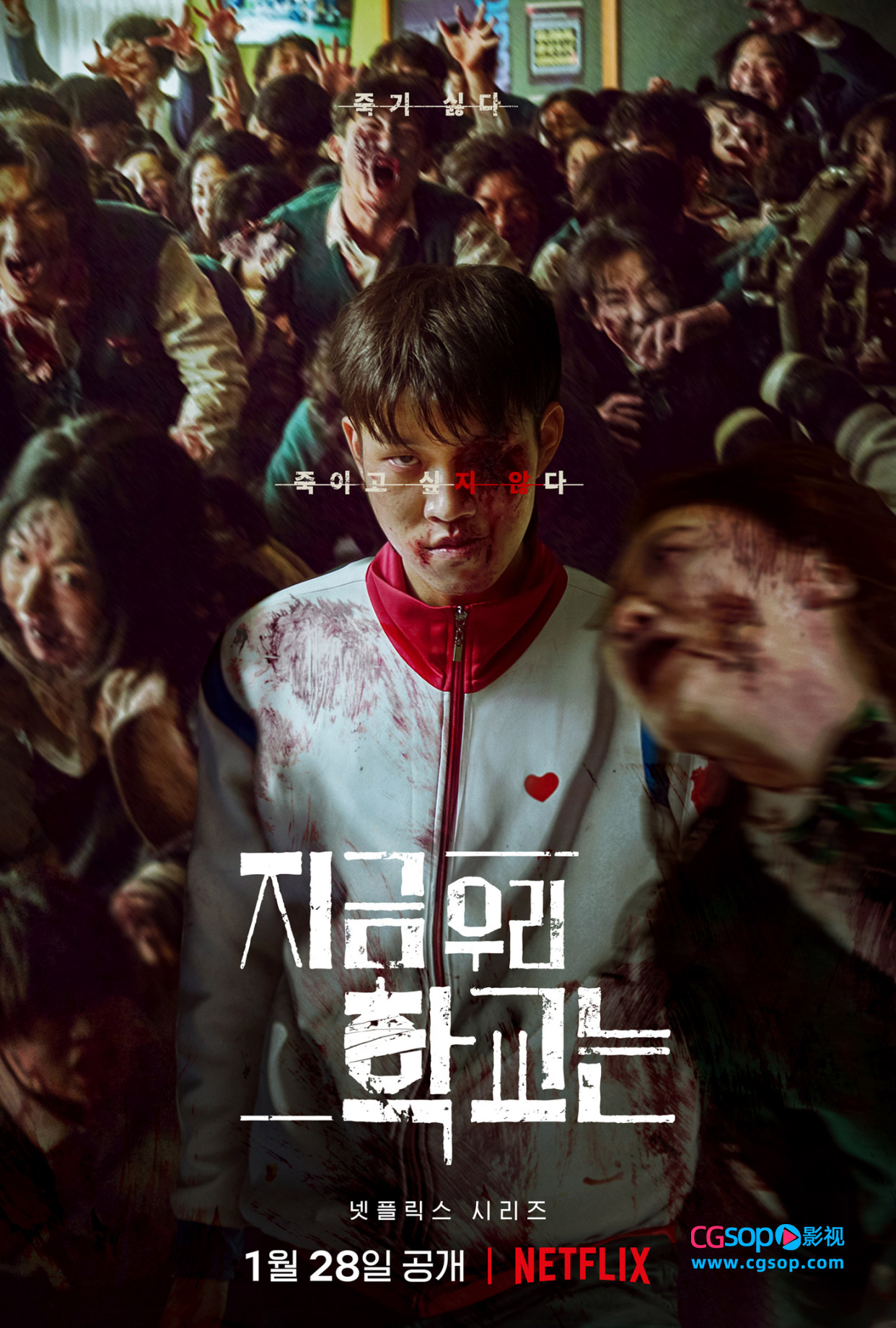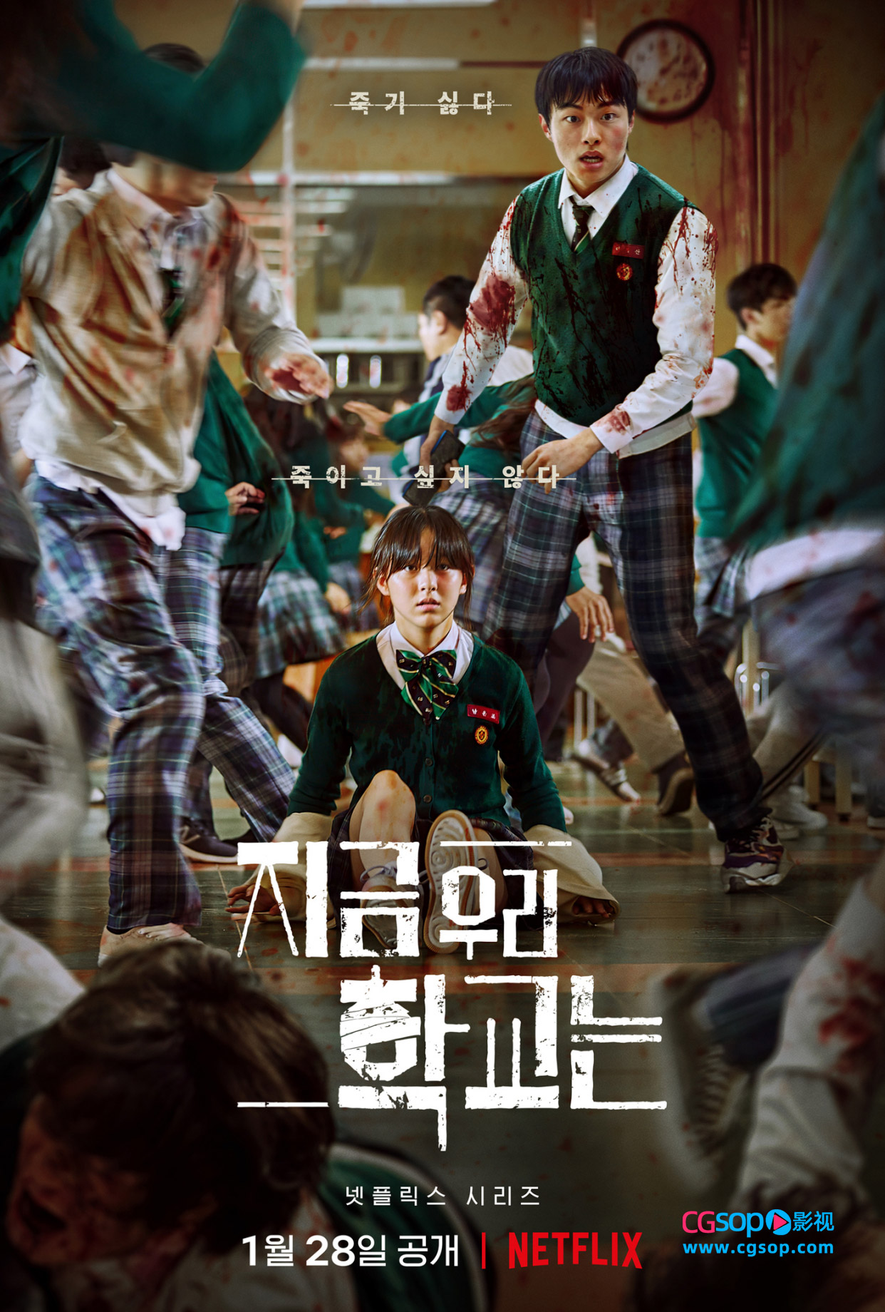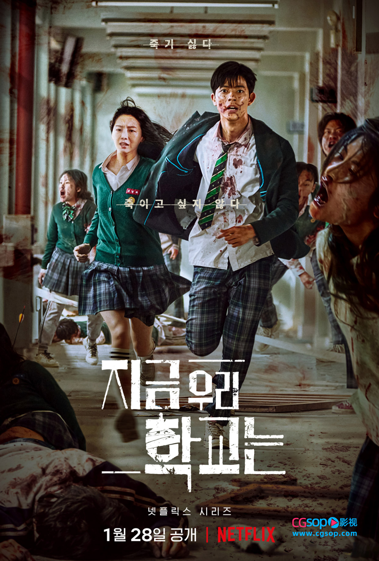 CGSOP影讯 奈飞丧尸题材新韩剧 《僵尸校园》又名《现在我们学校》发布终极中字预告和宣传海报。交代了校园内病毒爆发的起因,风格和《釜山行》有异曲同工之妙,该剧由尹灿荣、朴持厚、曹怡贤、朴所罗门、刘仁秀、禹志贤出演,将于1月28日上线。
