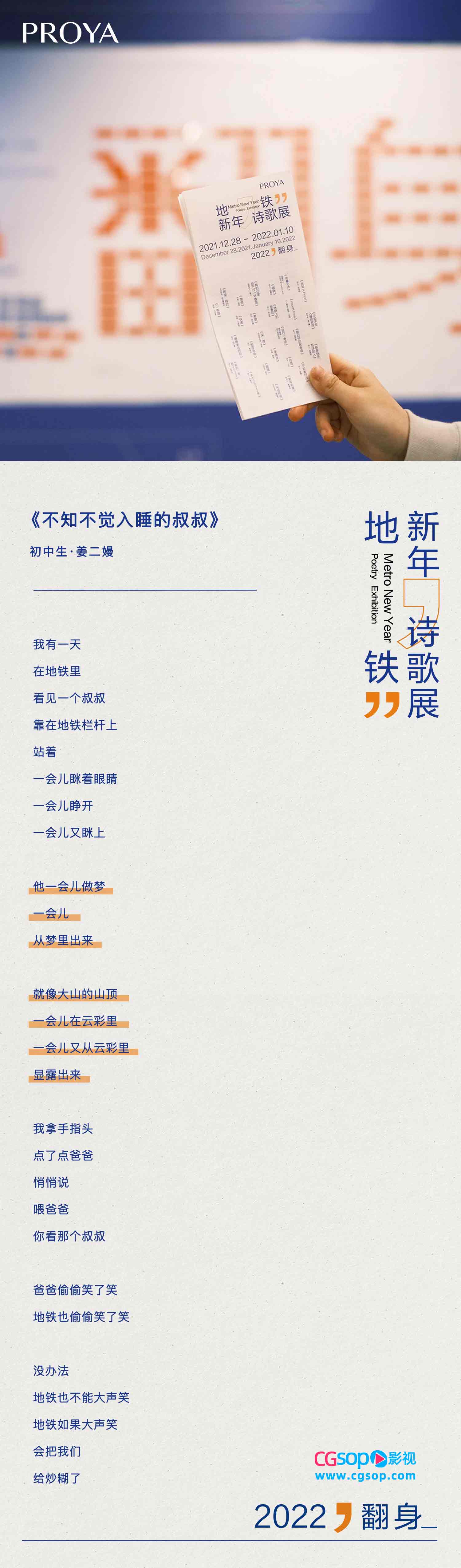 这个新年,珀莱雅PROYA选择「翻身」站举办新年诗歌展,邀请27位诗人以「希望」为主题,写下新年的第一首诗,其中有已经出版过诗集的作家、诗人、学者,也有学生、算法工程师、矿工、农民、音乐人、企业职员;同时,我们也询问了更多朋友他们心中关于新年的种种意象,以共创的形式一起写下长诗《新年是什么》。在新年的时刻,诗歌是我们共同的语言,这些关于新年的诗句,也都关于希望。
