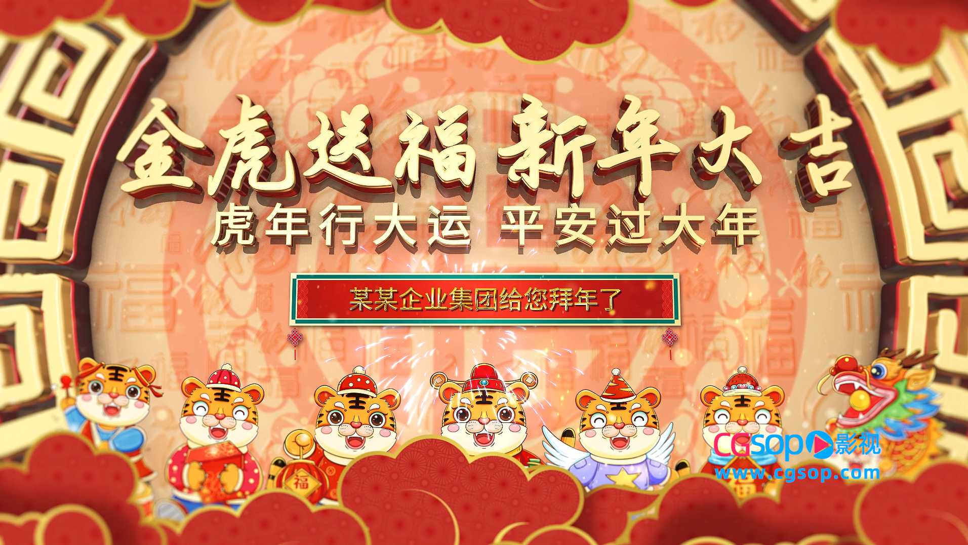 喜庆三维立体大金字虎年片头AE模板