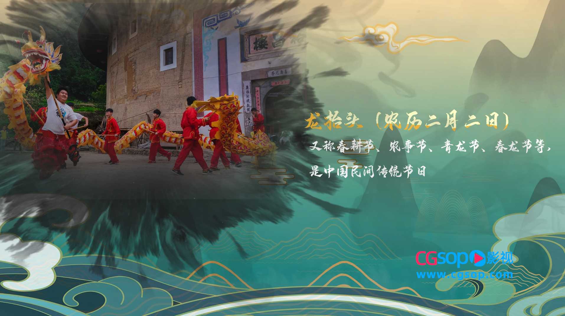 中国风水墨效果二月二龙抬头