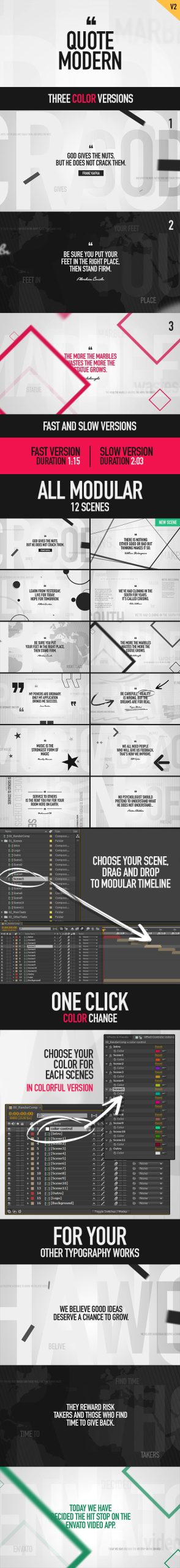 这个现代而明亮的报价项目适用于您的电影动态排版序列。您可以在报价或排版创意中使用此项目。我为您的政策、时尚、科学、流行、文化、城市、地理、简约、运动、杂志、商业、奇幻和政治主题创建了 12 个场景。享受!