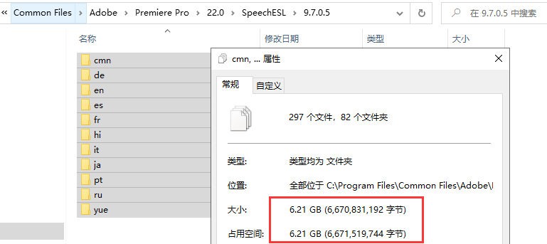 这些语言包大小加起来有 6.2GB,我们可以根据自己所需,如果不想占用太多 C 盘空间,建议可以只保留 en、CMN、YUE 其余不需要可直接删除。