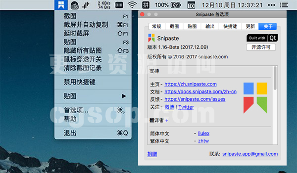 Snipaste V2.7.2-Beta 是Mac平台上的一款非常好用的截图加贴图工具。Snipaste V2.7.2-Beta 可以将剪贴板里的文字或者颜色信息转化为图片窗口,并且将它们进行缩放、翻转、旋转、设为半透明,甚至让鼠标能穿透它们。