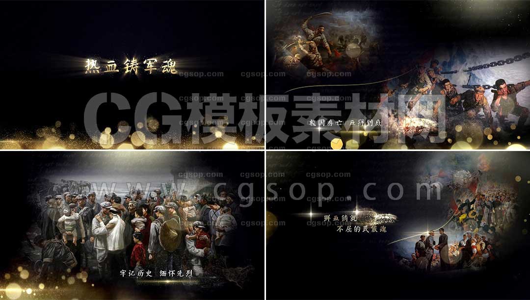 【90】AE模板 金色粒子素描军魂电影电视剧片头