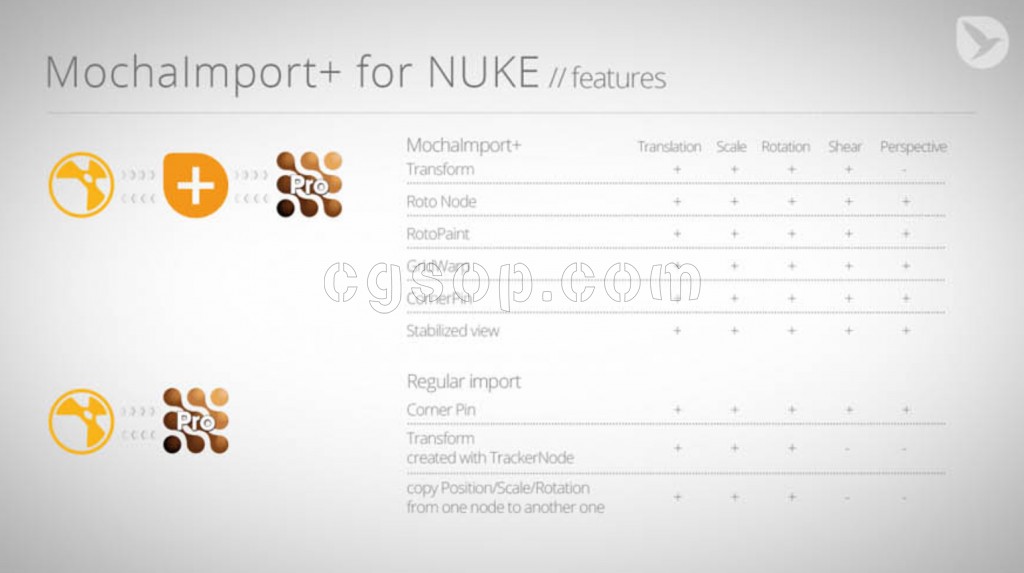 5.多位置/缩放/旋转:MochaImport+还带来了从Mocha斜切和透视数据到NUKE。