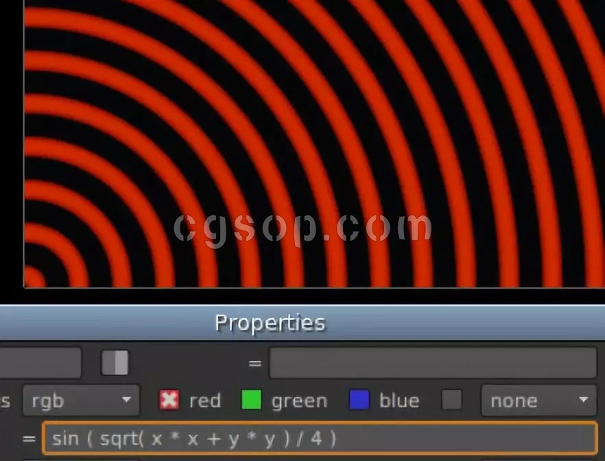出现了一个同心环!要缩放,在内部除以一个数使距离增加更慢:sin(sqrt(x * x + y * y ) / 4)