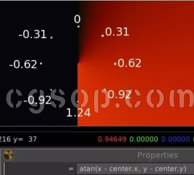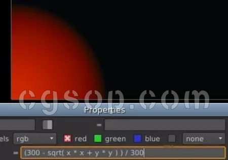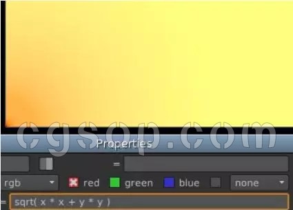 表达式节点):sqrt(x * x + y * y )将鼠标悬停在图像上方,您会看到左下角的红色值为0,
