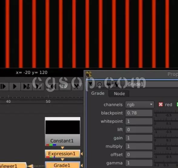 超级红色。将光标悬停在查看器中,查看颜色值。您可以看到我们将每个像素的x坐标直接映