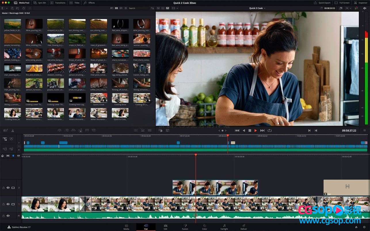 专为期限紧迫且需要快速周转的项目而设计,剪切页面专为提高编辑速度而设计。同步库和源覆盖工具是编辑多凸轮程序的最快方法。使用双时间线、源磁带和智能编辑工 具,您可以比以往更快地工作。可扩展的界面非常适合便携式编辑!