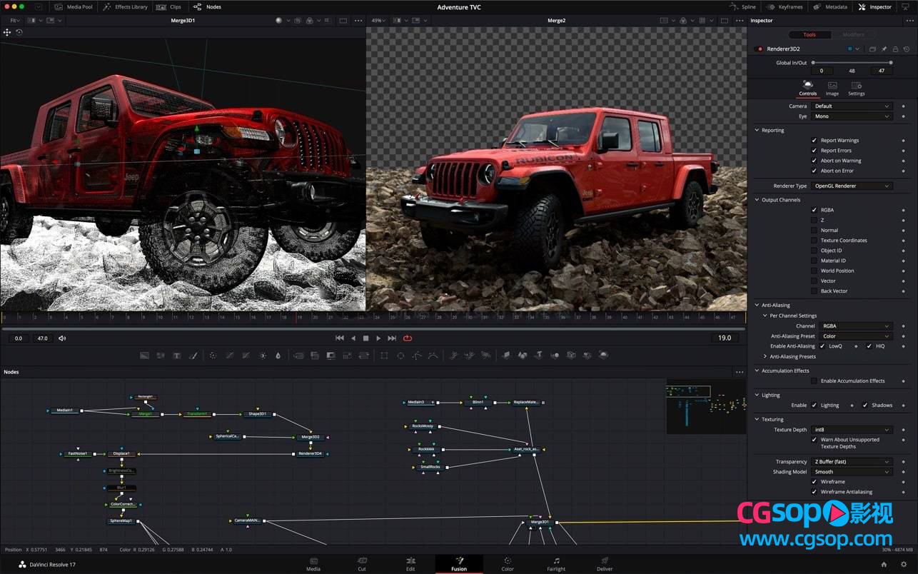 Fusion 为您提供了一个真正的3D 工作空间,其中包含 250 多种工具,可用于创建故事片质量的视觉效果和令人惊叹的动态图形!现在,您可以在 DaVinci Resolve 17 中创建复杂的合成、使用矢量绘画、动面标题、添加3D粒子、键、旋转镜等!