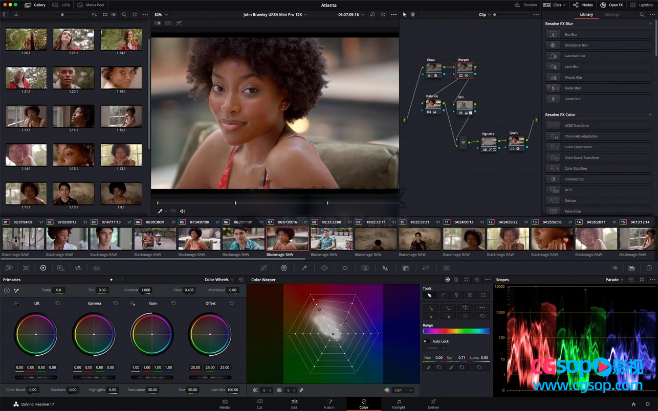 好莱坞最受欢迎的色彩校正器不断改进!您将获得高级 HDR 原色分级工具,具有无限制的二次校正、电源窗口和跟踪以及用于精细分级的新色彩扭曲器、额外的 LUT 支持、共享分级、魔术遮單、更好的降噪、更快的稳定、超级缩放、数十种分辨率FX 插件等等。