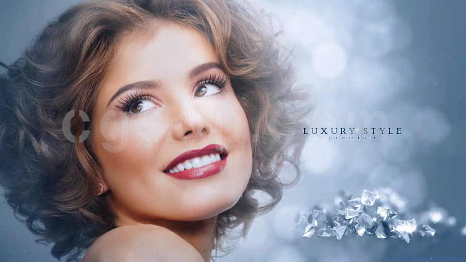 蓝色水晶幻灯片大气唯美蓝灰色调钻石珠宝展示广告宣传AE模板