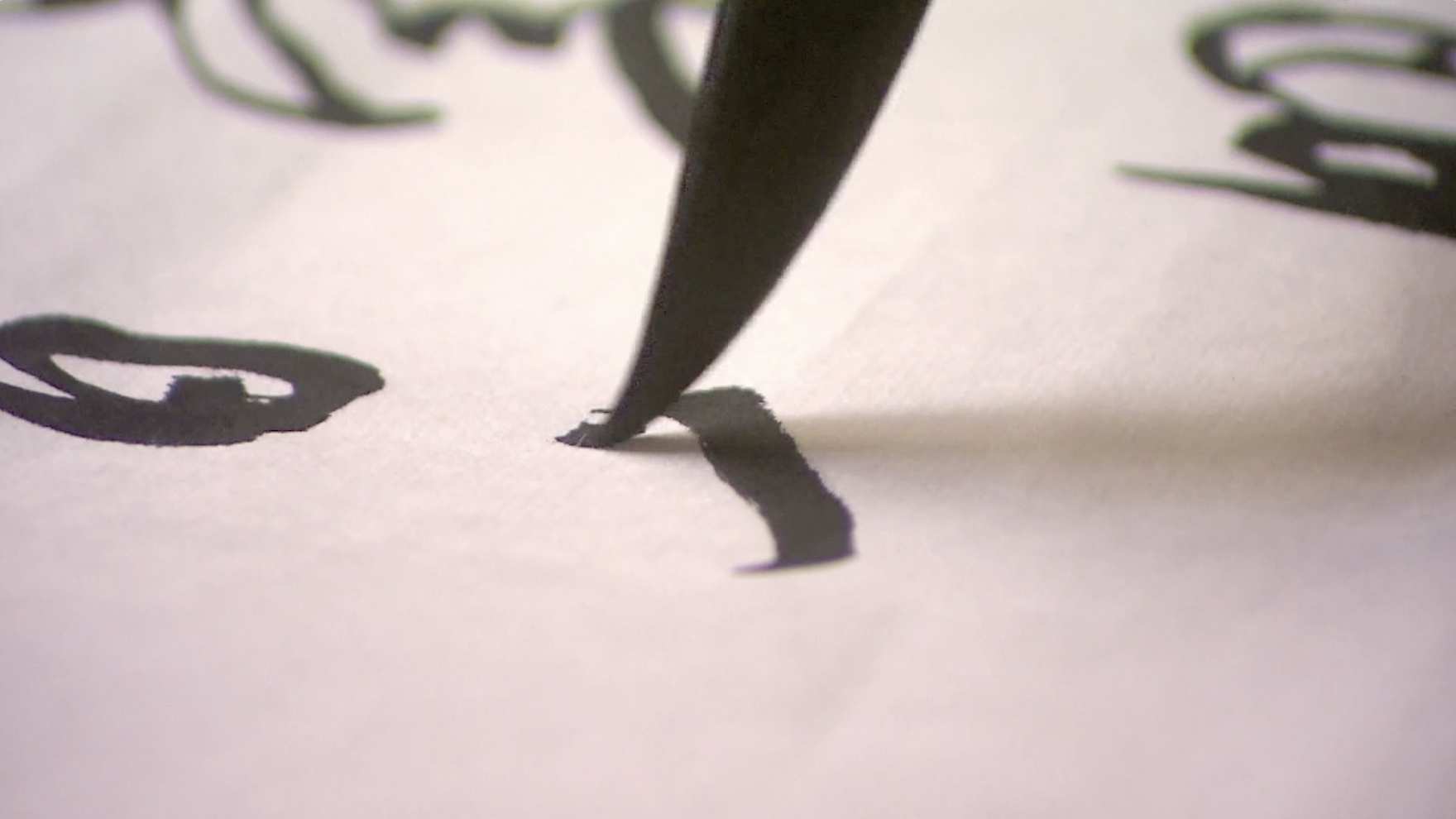 编号:艺术家在用毛笔写字创作