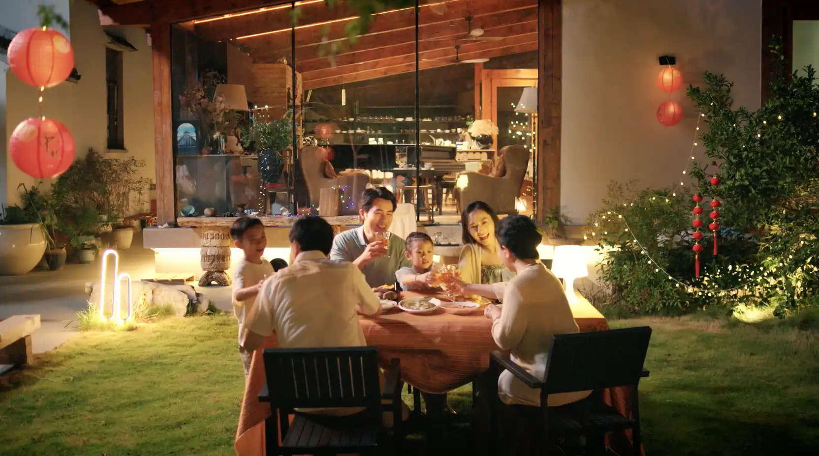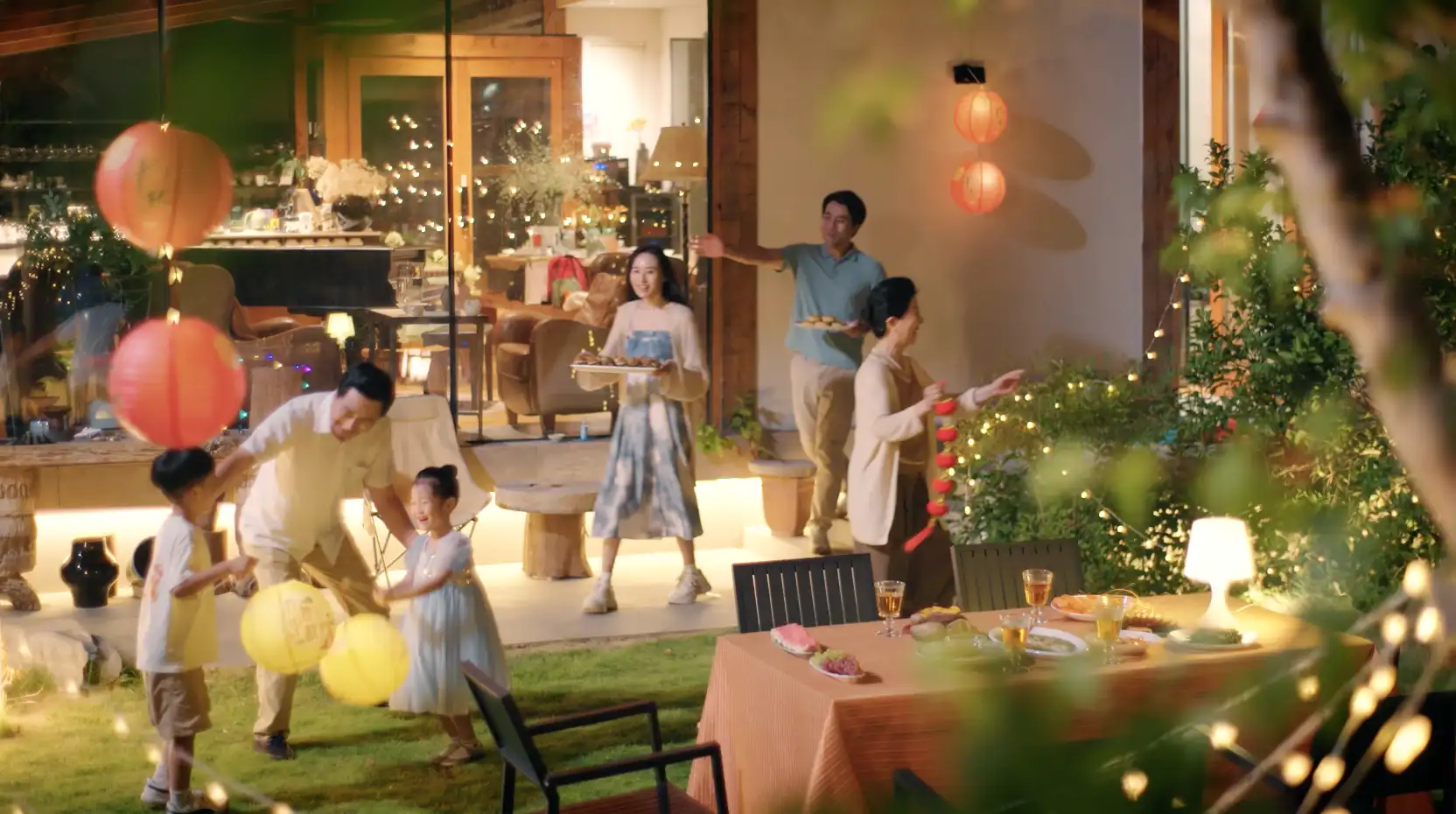 4k中秋团圆一家人祖孙三代赏月月饼大闸蟹