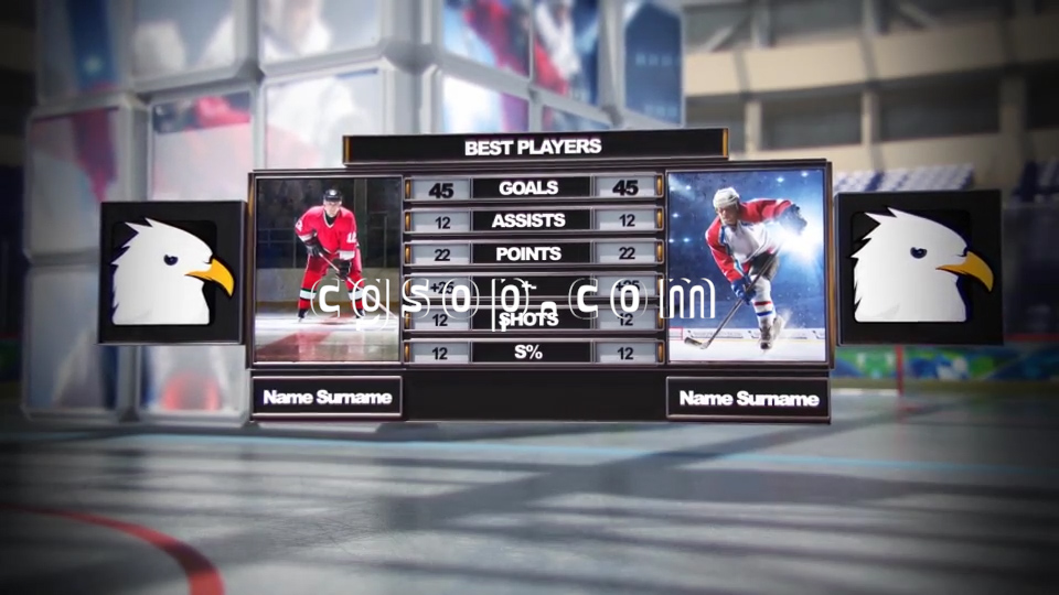 动态曲棍球开场鼓舞人心的多球队徽标和球员形象介绍