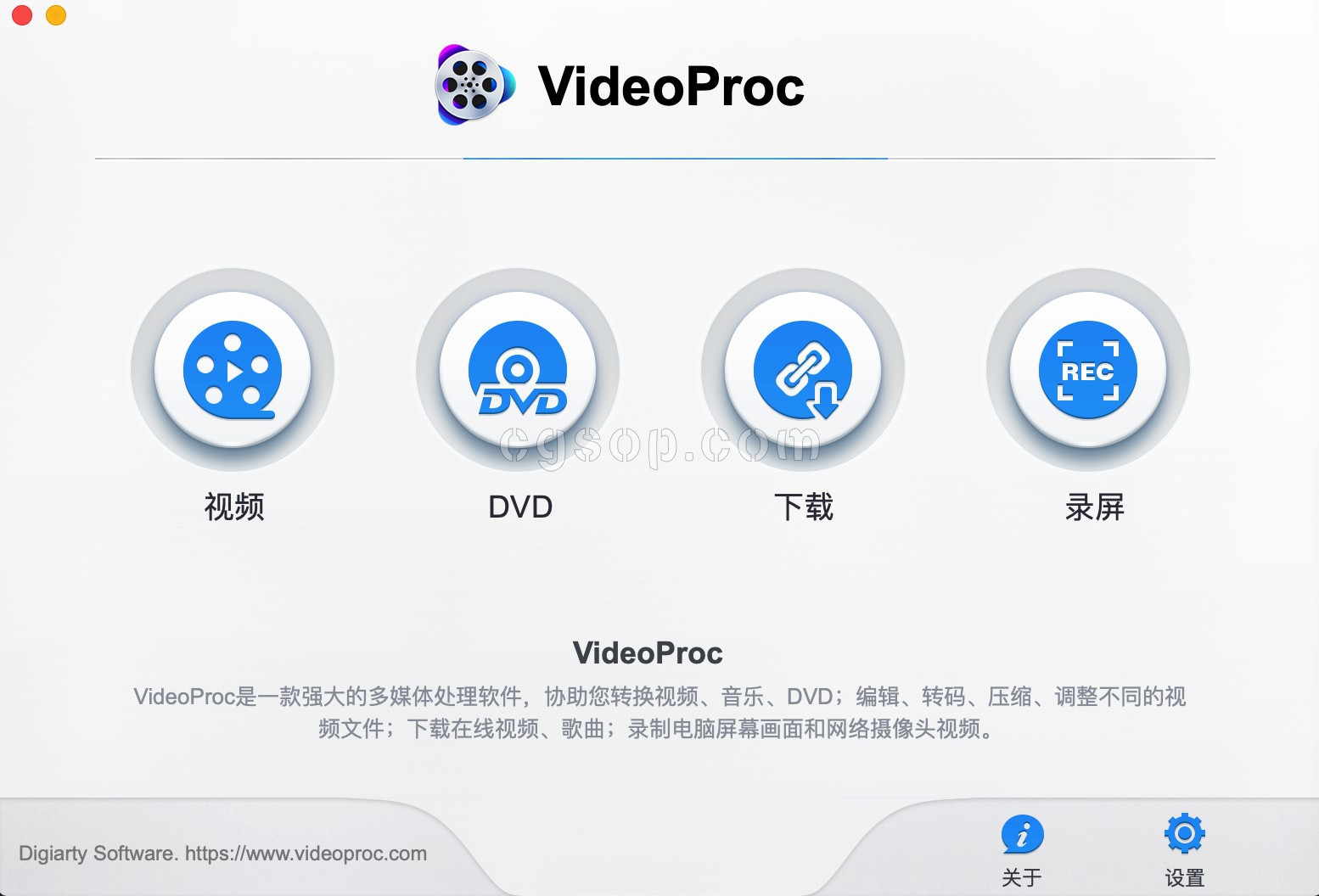 VideoProc For Mac v3.7是cgsop.com搜集的一款全新的视频转换工具,它的前身是MacX Video Converter Pro全新升级命名为VideoProc,全新定义4K硬盘的处理,简单易用。功能强大的视频转换工具,它无论是HD、3D、UHD、4K、5K或者8K影片还是DVD光盘、网络下载硬盘、摄像机、手机拍摄的影片,VideoProc都可以提供专业的影片处理方案,同时保证品质和速度。