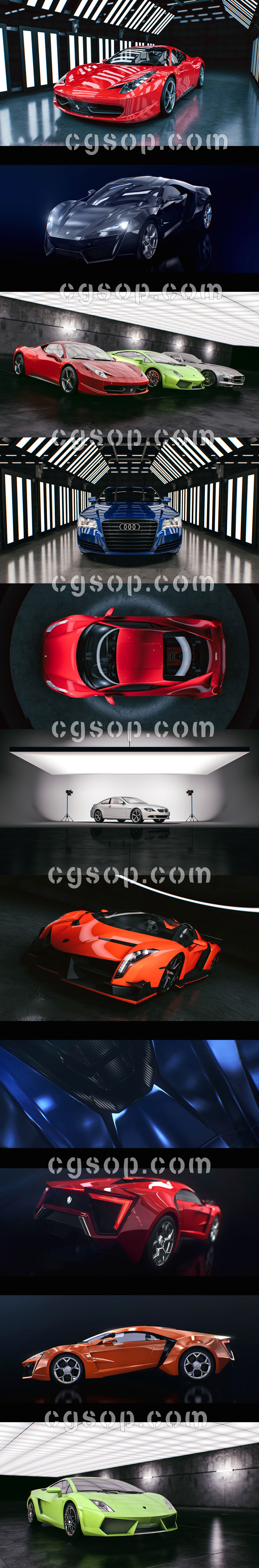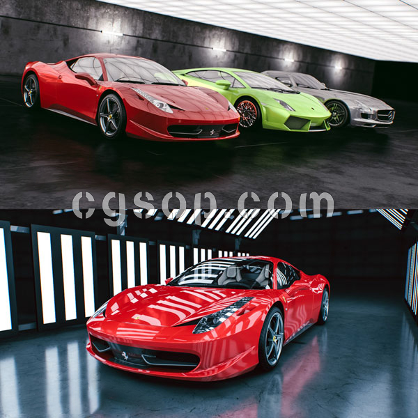 200个C4D车漆汽车材质预设+5组Cinema 4D室内摄影棚环境场景预设