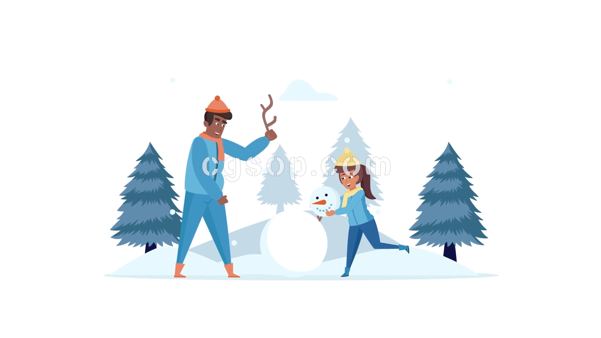 扁平化MG场景雪人主题的卡通插画场景动画