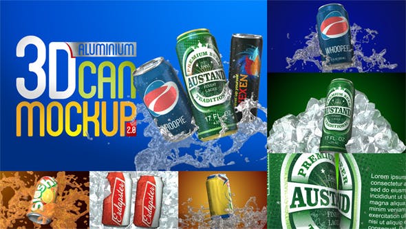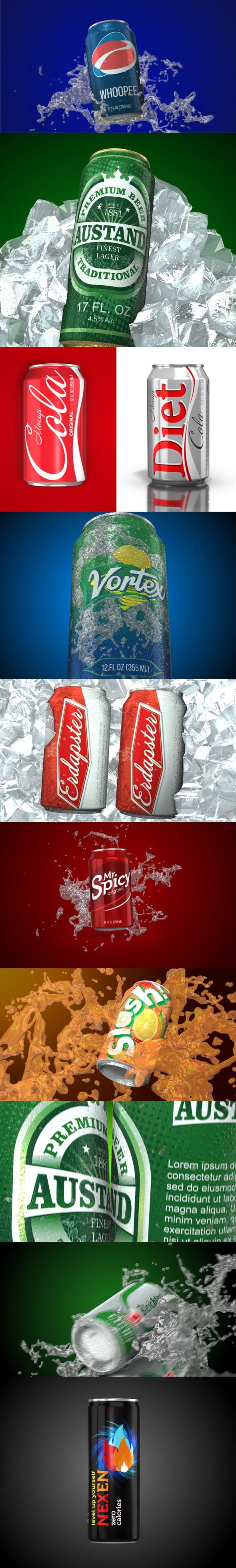 3d铝罐饮料商业样机,12个场景