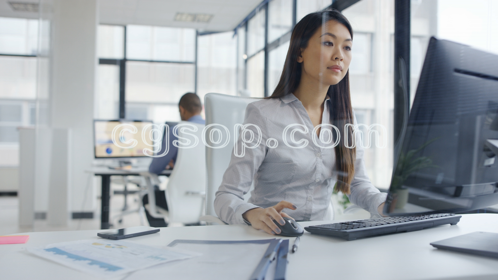 4K商务人士 办公室里讨论财务问题的女人