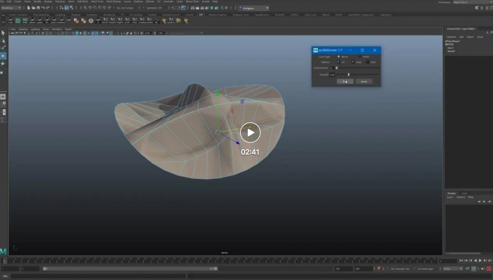 arcDeformer是一个小工具,可帮助平滑/重塑选定的边缘循环。